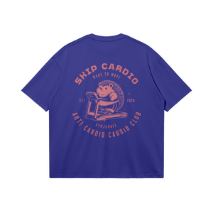The Anti Cardio Cardio Club Heavyweight Boxy Gym T-Shirt is designed for those who hate cardio but still show up anyway. Part of GymJungle’s Anti Cardio Cardio Club drop, this gym t-shirt features chubby animal characters struggling through cardio in a fun, anime-inspired style, turning a shared gym struggle into motivation. It’s a playful take on cardio that speaks to lifters who’d rather lift, but still get it done.