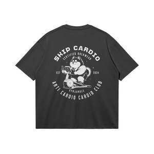 The Anti Cardio Cardio Club Heavyweight Boxy Gym T-Shirt is designed for those who hate cardio but still show up anyway. Part of GymJungle’s Anti Cardio Cardio Club drop, this gym t-shirt features chubby animal characters struggling through cardio in a fun, anime-inspired style, turning a shared gym struggle into motivation. It’s a playful take on cardio that speaks to lifters who’d rather lift, but still get it done.