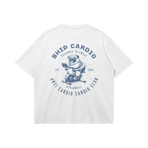 The Anti Cardio Cardio Club Heavyweight Boxy Gym T-Shirt is designed for those who hate cardio but still show up anyway. Part of GymJungle’s Anti Cardio Cardio Club drop, this gym t-shirt features chubby animal characters struggling through cardio in a fun, anime-inspired style, turning a shared gym struggle into motivation. It’s a playful take on cardio that speaks to lifters who’d rather lift, but still get it done.